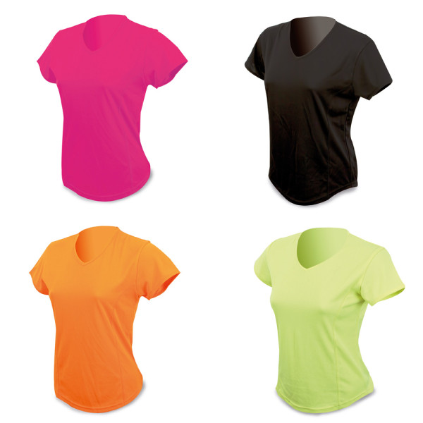 in confortevole tessuto tecnico traspirante 145gr, sulla pelle una piacevole sensazione di freschezza, di veloce asciugatura, maniche corte, scollo a V, cuciture rinforzate.