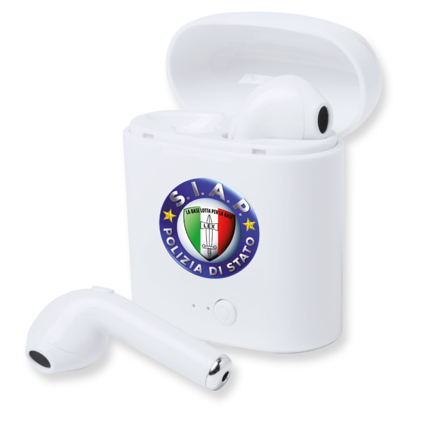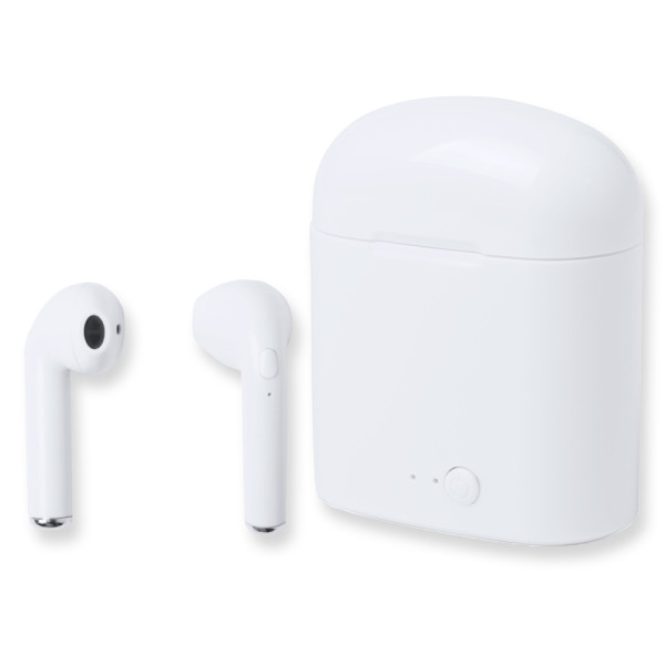 Coppia di auricolari bluetooth con box di ricarica compatibile con Ios e Android. Tempo di utilizzo 5-6 ore