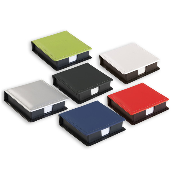 Elegante portamemo in similpelle con impunture, copertina nel cui interno è posizionato il calendario, completo di blocco appunti con circa 200 fogli. Ampio spazio per la personalizzazione sul coperchio.